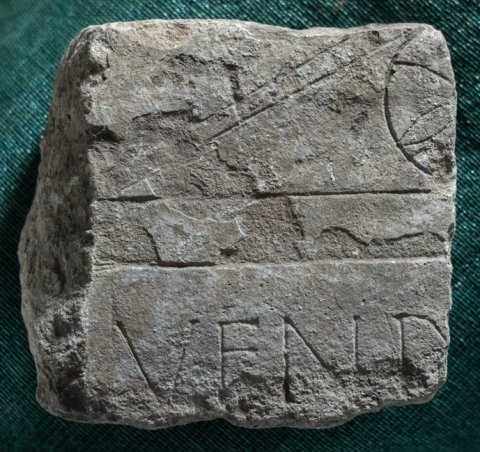 - Giebelfeld mit Kreisrosette (Ritzzeichnung)