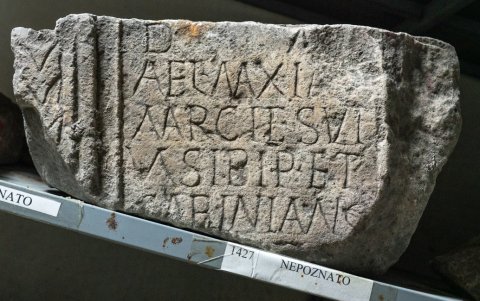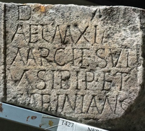 - D(is) M(anibus) / Ael(ius) Maxim[us] / Marci(a)e su(a)e / v(ivus) sibi p(osuit) et / Sabiniano / [---