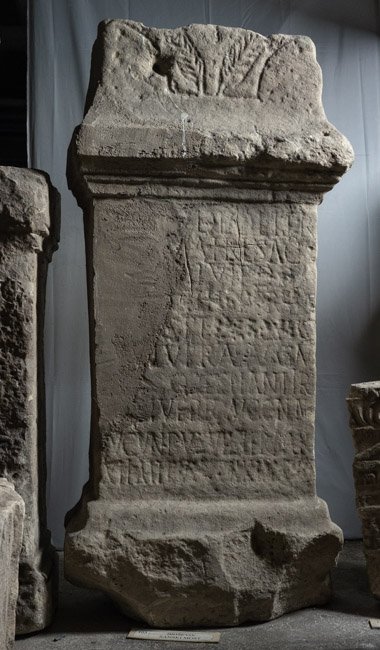 - [I(ovi) O(ptimo) M(aximo)] Deo Liber(o) / [Terrae] Matri sac(rum) / [pro sa]lute dd(ominorum) [nn(ostrorum)] / [[[Impp(eratorum) M(arci) Iulior(um)]]] / [[[Philipp(orum) Augg(ustorum) et]]] / [M(arciae) S]everae Aug(ustae) n(ostrae) / [s(ub) c(ura)] Co[ss]it(i)ani Fir/[m]i v(iri) e(gregii) pr(ocuratoris) Augg(ustorum) nn(ostrorum) / [I]ucundus vil(icus) ferrar(iarum) / XI Kal(endas) M(aias) [[[Imp(eratoribus) Philipp(is) Augg(ustis) c(onsulibus)]]]