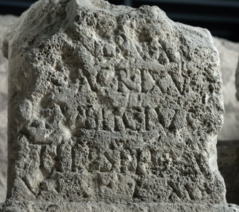 - [Mi]nerva[e] / sacr(um) ex vo(to) / L(ucius) Publicius / Telespho[r]u[s] / v(otum) s(olvit) l(ibens) m(erito)