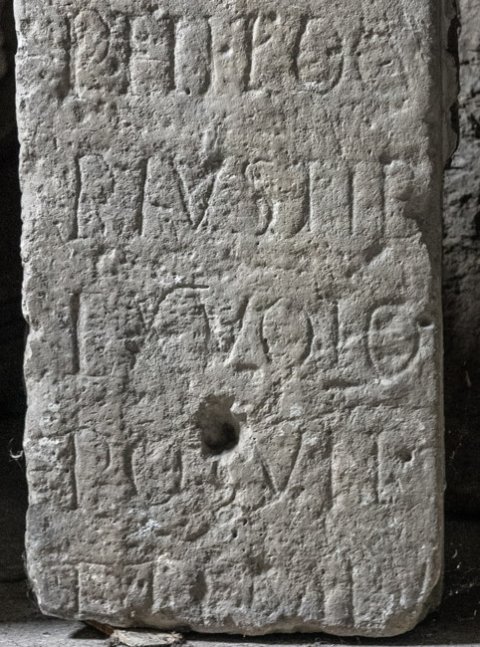 - ---]/ni suo/rumque / omnium / Philocy/rius tib(icen) / ex voto / posuit / et tempu//[lum](!) res/tituit / Id(ibus) Iuli(i)s / Imp(eratore) d(omino) n(ostro) C(aesare) / Gordia/no Aug(usto) II / [e]t Pompe/iano co(n)s(ulibus)