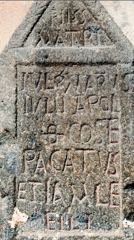 - Piiss(imae) / matri // Iul(ius) Nartus / Iulii Apol(linaris) / b(ene)f(iciarius) co(n)s(ularis) et / Pacatus / et Iamle / fili(i)