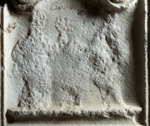 - In Bogennische Standleiste, darauf links Dienerin, rechts Diener ?
