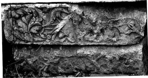 - Friesecke: auf der Vorderseite Akanthusranke mit Blüten. Auf der rechten Nebenseite mythische Figur : sitzende Greifen, zwischen ihnen eckiges Podest mit Füßen, darauf Gefäß.