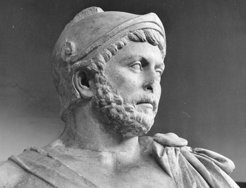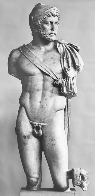 - Historische Person: Kaiser Hadrian in heroischer Nacktheit, Statuentypus des Diomedes, mit Helm, Schwertgurt und Mantel über der linken Schulter.