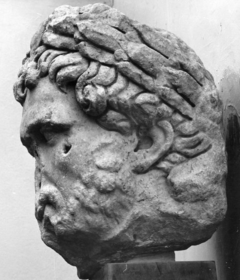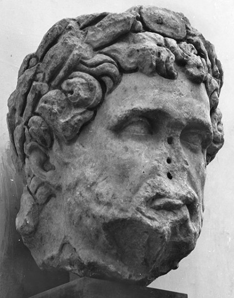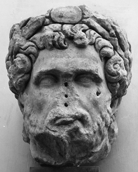 - Historische Person: überlebensgroßes Porträt des Kaisers Septimius Severus mit Lorbeerkranz mit Clipeus.