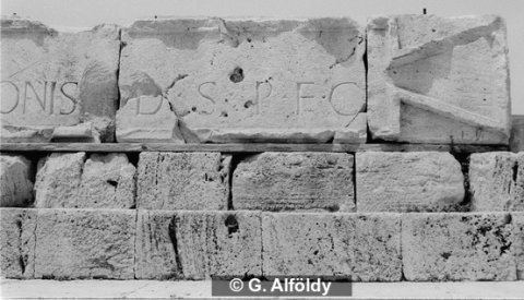 - 10 Architravblöcke, Inschrift tlw. abgeschlagen