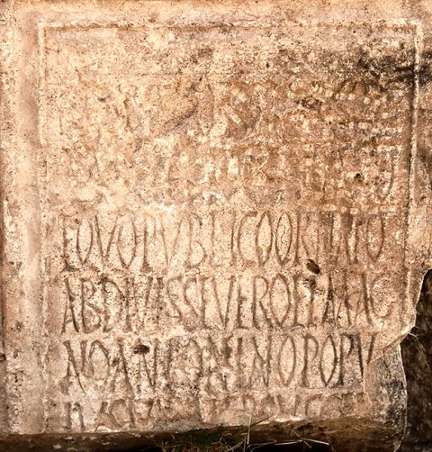 - C(aio) Pompe[i]o L(uci) fil(io) Quiri/na [F]eli[c]i Octaviano / equo publico ornato / ab divis Severo et Mag/no Antonino popu/lus universus curi/[arum posuit ---