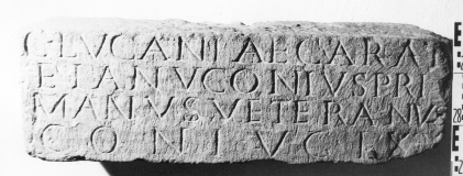 - C(aiae) Lucaniae Carat[a]/e Ianuconius Pri/manus veteranus / coniugi [---]