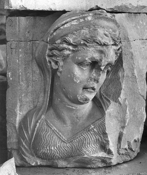 - Mythische Figur: Büste einer Göttin (Aphrodite - Venus ?) mit Diadem.