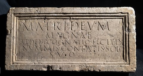 - Matri Deum / Magnae / aedem cognatio fecit ex / nummis conlatis solo / suo