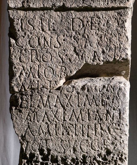 - [------] // et Sil(vano) deo / cons(ervatori) sac(rum) / pro s(alute) Maxi/mi Or[---] / [------] / et Maximi / Maximiani / a mil(itiis) |(centuriae) IIIIC / [ex] vot(o) succe[p(to)](!)