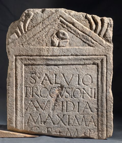 - S(exto)(?) Alvio / Procusio(?) an(norum)(?) L(?) / Aufidia / Maxima / c(oniugi) b(ene) m(erenti) p(osuit)