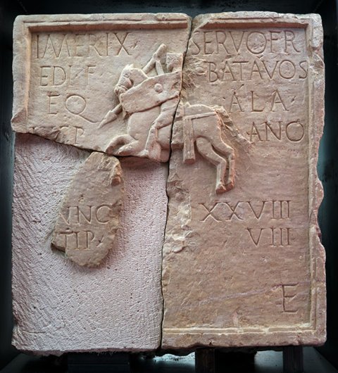 - Imerix Servofr/edi f(ilius) Batavos(!) / eq(ues) ala(e) / Hispano/[rum I] / [a]nnor(um) XXVIII / stip(endiorum) VIII / [h(ic)] s(itus) e(st) // [---]azicico / [---] et Apulo / [---]co Aetoris f(ilio) / [he?]res