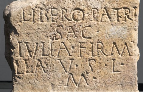- Libero Patri / sac(rum) / Iulia Firmi/lla v(otum) s(olvit) l(ibens) / m(erito)