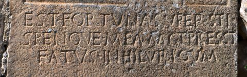 - [[------]] / C(ai) l(iberta) Fortu[nata] / an(norum) h(ic) s(ita) e(st) XIIX / si pietas prodest / <c>uiquam vixisse / modeste vos precor / o Mane[s sit] mihi / terra lev[i]s / libertas [cui] olim fuerat / promissa e[s]t ante ditis sub / fatum venit [i]n arbitrium / vivite felices quibu[s] // est Fortuna superste[s] / spenque(!) meam oppress[i]t / fatus in Hiluricum(!)