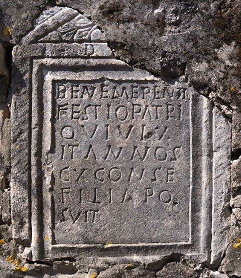 - D(is) M(anibus) // bene merenti / Festio(!) patri / qui vix/it annos / CX Conse(!) / filia po/suit