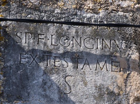 - L(ucius) Pomponiu[s] / Sp(uri) f(ilius) Longinu[s] / ex testamen(to) / s(itus)