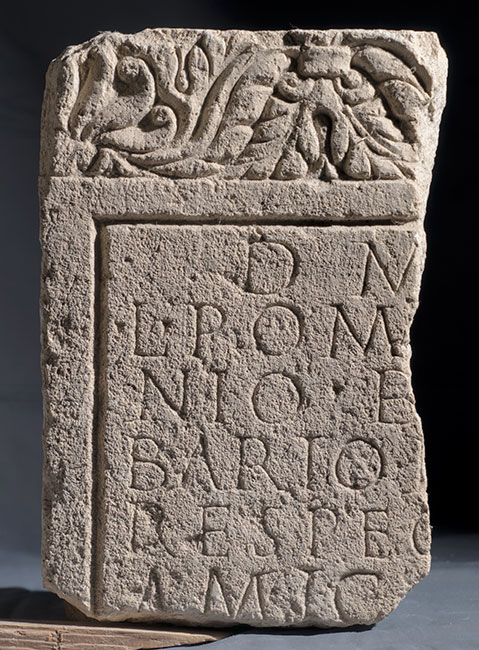 - D(is) M(anibus) / L(ucio) Pom[po]/nio B[ar]/bario [---] / Respec[tus?] / amico [---] / [----