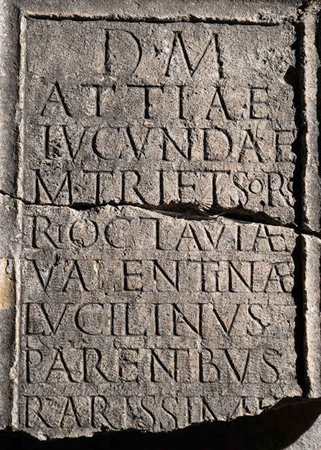- D(is) M(anibus) / Attiae / Iucundae / matri et soro/ri Octaviae / Valentinae / Lucilianus / parentibus / rarissimi[s] / [---