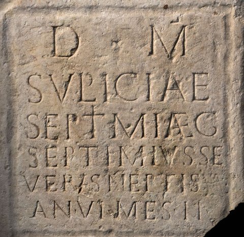 - D(is) M(anibus) / Sulpiciae / Septimiae G(aius) / Septimius Se/verus neptis(!) / an(nis) VI me(n)s(ibus) II