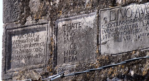 - als Dauerleihgabe des Museums Zadar im Narona-Museum in Vid. Kopie der Inschrift an der Eresova kula (Turm der Stadtmauer in Vid).