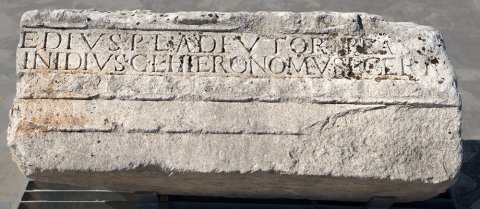- [--- P(ublius) Sp]edius P(ubli) l(ibertus) Adiutor P(ublius) Las[tus ---] / [--- C(aius) M]inidius C(ai) l(ibertus) Hieronomus L(ucius) Cer[---]
