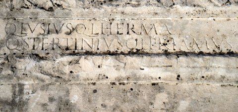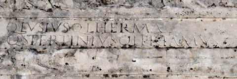 - Q(uintus) Lusius Q(uinti) l(ibertus) Herma / Q(uintus) Tertinius Q(uinti) l(ibertus) Primus // M(arcus) Licin[ius ---] / M(arcus) Eulo[gius ---] // [---?
