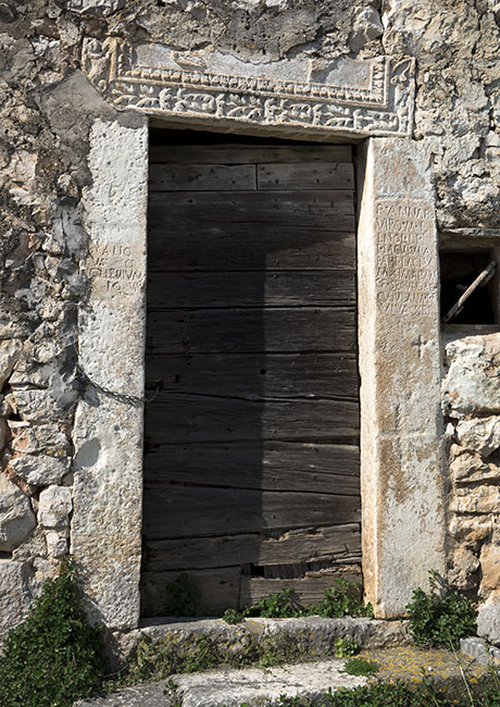 - Original nach Zadar verbracht, dort verschollen, Kopie am Turm der Stadtmauer in Vid - Eresova kula - als Türpfosten.