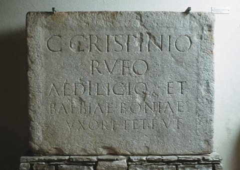 - C(aio) Crispinio / Rufo / aedilicio et / Baebiae Boniae / uxori f(ilius) et f(ilia) v(ivi) f(ecerunt)