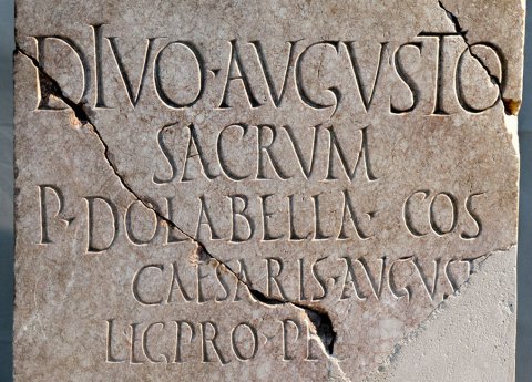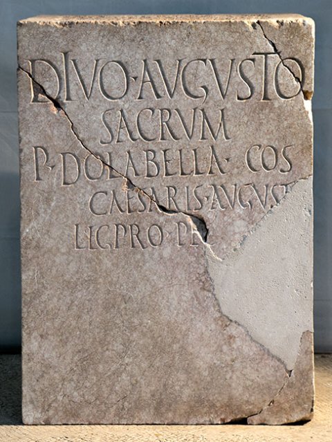 - Divo Augusto / sacrum / P(ublius) Dolabella co(n)s(ul) / Caesaris August(i) / leg(atus) pro pr(aetore)