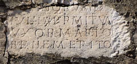 - ---] / [---] annorum / Iulia Primitiva / uxor marito / bene merito