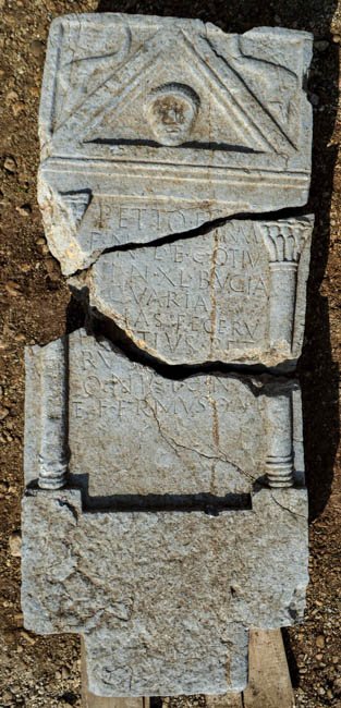 - Petto Firmi / f(ilius) an(norum) L et Cotiu/ni an(norum) XL Bugia / [et] Quaria(!) / filias(!) feceru(nt) / Rustius Pet(t)/onis f(ilius) o(bitus) an(norum) [---] / et f(rater) Firmus o(bitus) an(norum) L