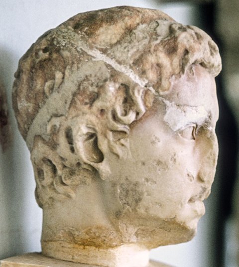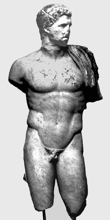 Historische Person: Porträtstatue Juba II., nackt bis auf Mantel auf der linken Schulter