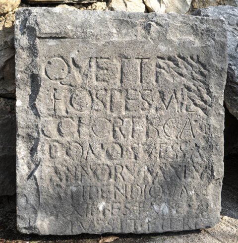 - Q(uintus) Vettiu[s] / Hospes mil[es] / cohortis Camp(anorum) / domo Suessa / annorum XLV / stipendiorum / XXII testamen[to] / iussit fieri