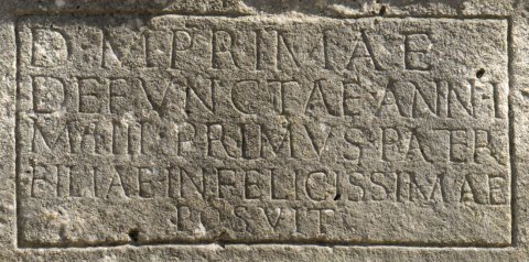 - D(is) M(anibus) Primae / defunctae ann(i) I / m(ensium) IIII Primus pater / filiae infelicissimae / posuit