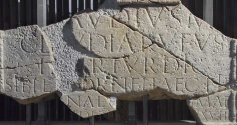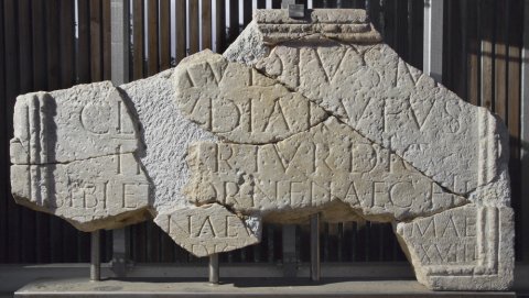 - [M(arcus)?] Claudius M(arci) f(ilius) / Claudia Rufus / II vir iur(e) dic(undo) / sibi et Corneliae C(ai) fil(iae) / Cr[ispi]nae u[xori opt]imae / [et M(arco?) Cla]udio [Rufino fil(io) a]n(norum) XVIII