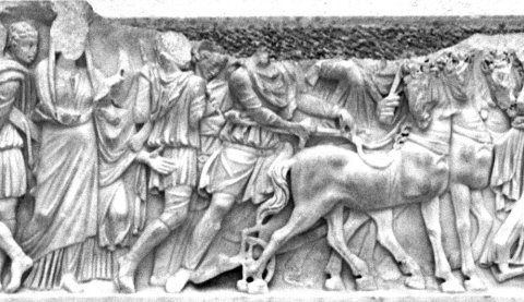 - Mythos: Pelops und Oinomaos brechen zum Wagenrennen auf.