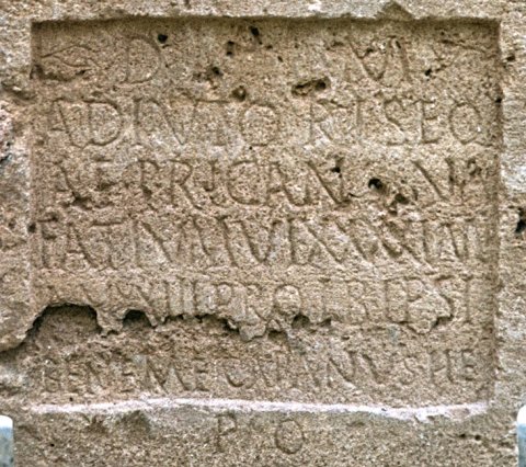 - D(is) M(anibus) / Adiutoris eq(uitis) / al(ae) pri(mae) Canna(ne)/fatium vi(xit) XXXXI m(ilitavit) / an(nos) XXIII pro(curante) {ib} ipsi / bene me(renti) Caianus he(res) / po(suit)