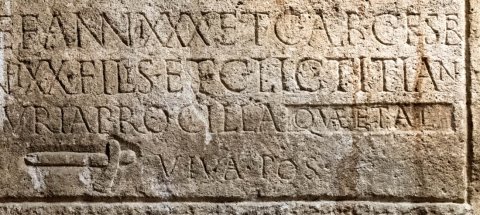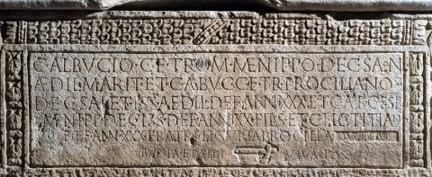 - C(aio) Albucio C(ai) f(ilio) Trom(entina) Menippo dec(urioni) Salon(is) / aedil(i) marit(o) et C(aio) Albuc(io) C(ai) f(ilio) Tr(omentina) Prociliano / dec(urioni) Sal(onis) et Iss(ae) aedil(i) def(uncto) ann(orum) IXXX et C(aio) Alb(ucio) C(ai) f(ilio) Ser(gia) / Menipp(o) dec(urioni) Iss(ae) def(uncto) ann(orum) IXX filiis et C(aio) Lig(urio) Titian(o) / def(uncto) ann(orum) XXX fratri Liguria Procilla quae et Al/bucia et sibi viva pos(uit)