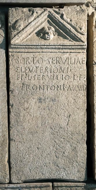 - Sorto Serviliae / Eleut(h)erioni(s?) / et L(ucio) Servilio L(uci) f(ilio) / Frontoni a(nnorum) XVIII