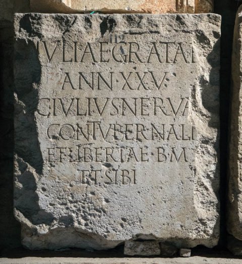 - Iuliae Gratae / ann(orum) XXV / C(aius) Iulius Nerva / contubernali / et libertae b(ene) m(erenti) / et sibi