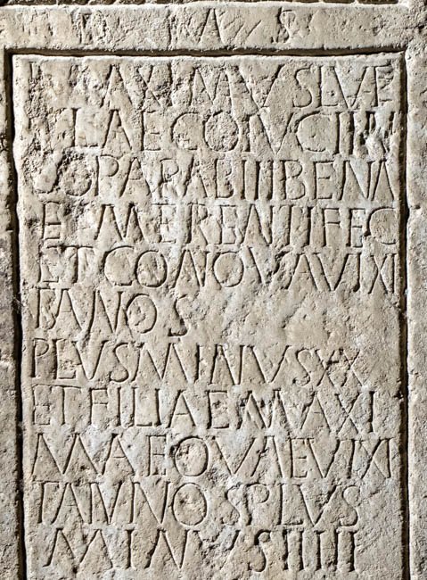 - D(is) M(anibus) s(acrum) // Maximus Lup/ulae co(n)iugi in/co(m)parabiii (!) bena/e(!) merenti fec(it) / et con(!) qua(!) vixi/t an(n)os / plus minus XX / et filiae Maxi/mae 0uae(!) vixi/t annos plus / minus IIIII