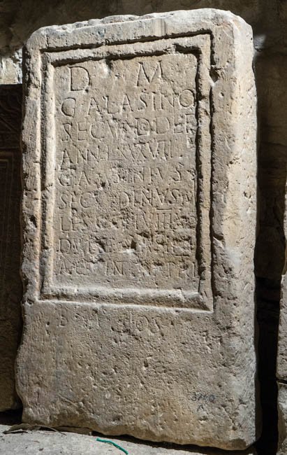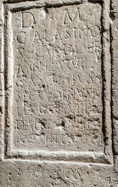 - D(is) M(anibus) / G(aio) Alasinio / Secundo def(uncto) / ann(orum) LXXXVII / G(aius) Alasinius / Secundinus mil/es coh(ortis) VIII vol(untariorum) / dupl[ar(ius)] Alasini/a Quintina patri / b(ene) m(erenti) pos(uerunt)