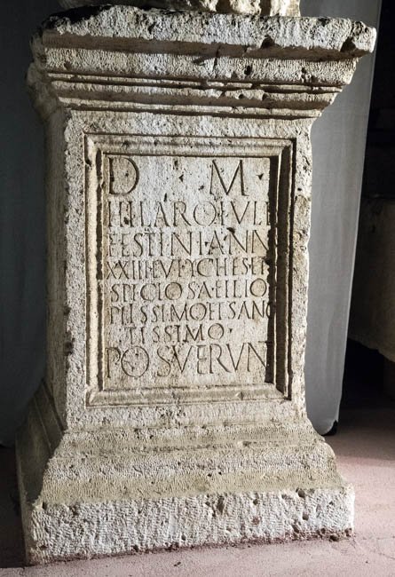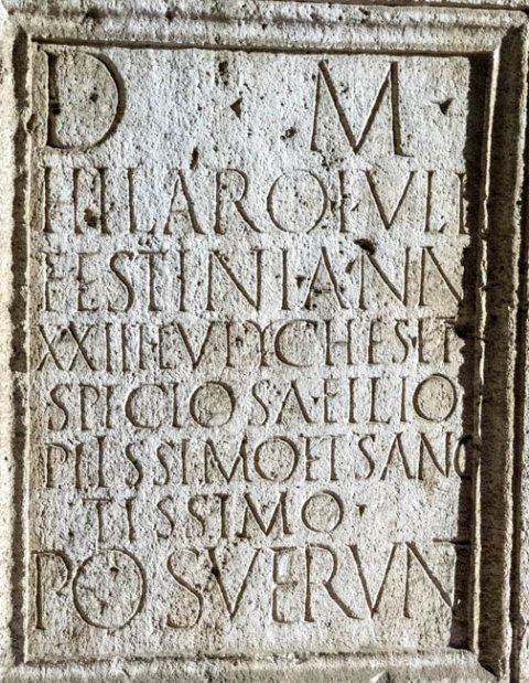 - D(is) M(anibus) / Hilaro Iuli / Festini ann(orum) / XXIII Eutyches et / Speciosa filio / piissimo et sanc/tissimo / posuerunt