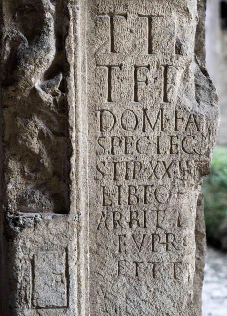 - T(itus) Ti[---] / T(iti) f(ilius) R[---] / dom(o) Fab[ia Brixia] / spec(ulator) leg(ionis) X[I C(laudiae) p(iae) f(idelis) ann(orum) ---] / stip(endiorum) XXII[--- t(estamento) f(ieri) i(ussit) sibi et lib(ertis)] / lib(er)t(abus)q(ue) [posterisque eor(um)] / arbit(ratu) T(iti) [---] / Euphro[syni? ---] / et T(iti) T[---] // in f(ronte) p(edes) [--- in a(gro) p(edes) ---]