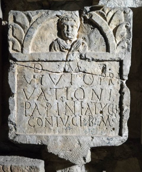- D(is) M(anibus) / Vivio Pri/vationi / Papinia Tyche / coniugi b(ene) m(erenti)