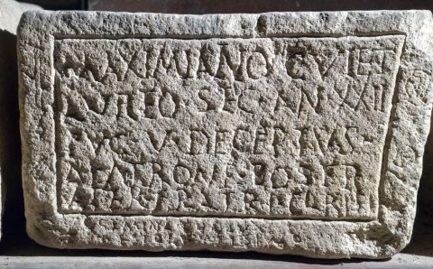 - Maximiano cui(!) et / Aureo sec(utori) ann(orum) XXII / pug(narum) V deceptus / a latronebos(!) fr/ater fratri caris(s)i(mo) // Gemina coniux / desideratis(s)imo