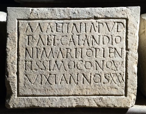 - Maltinia Pud(entilla?) / P(ublio) Ael(io) Catandio/ni marito pien/tissimo con(!) quo(!) / vixi(t) annos XXX