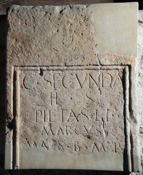- C() Secunda / h(ic) s(ita) / Pietas ei(!) / Marcus / ma(tri) s(uae) b(ene) m(erenti) p(osuerunt)